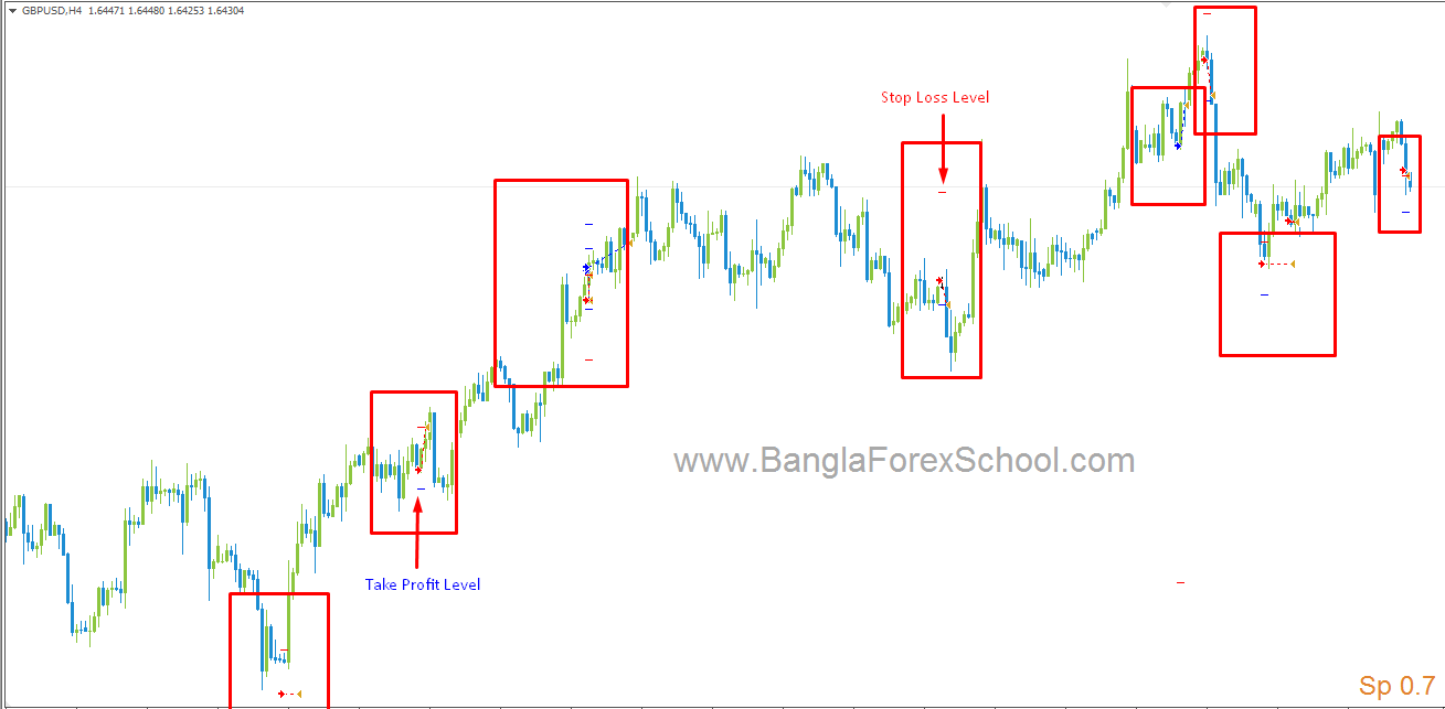 ইমেজে খেয়াল করুন GBP/USD প্রিভিয়াস সব ট্রেড দেখা যাচ্ছে Stop Loss ও Take Profit সহ দেখা যাচ্ছে।