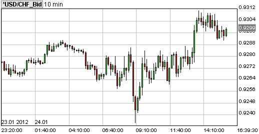 The Swiss Franc continued appreciating versus the American dollar as the economic outlook in Europe improves, causing the daily target at 0.9293.